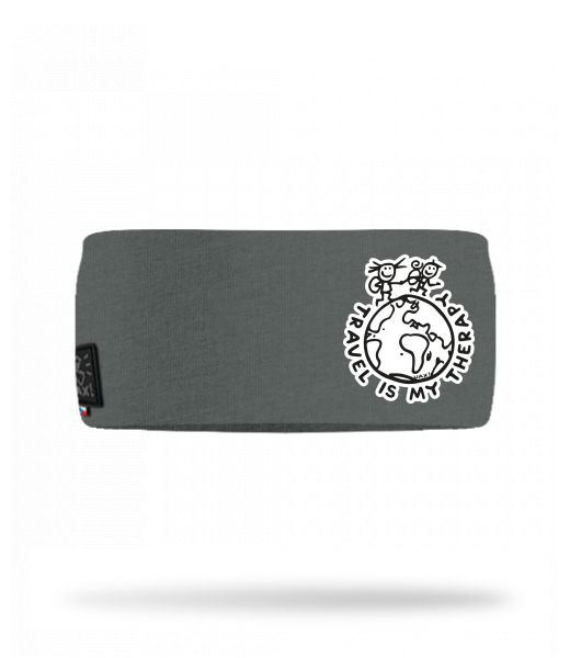 We make sustainable UAX clothing! - hand sewn in the Czech Republic uaxKids uaxAll productsHats and HeadbandsCOTTON SPORTS HEADBANDdesign 1240 - TRAVEL IS MY THERAPYDARK GRAY