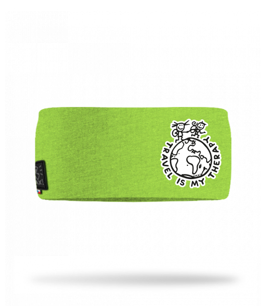 Cotton sports headband for kid with design 1240 TRAVEL IS MY THERAPY in color PARROT GREEN