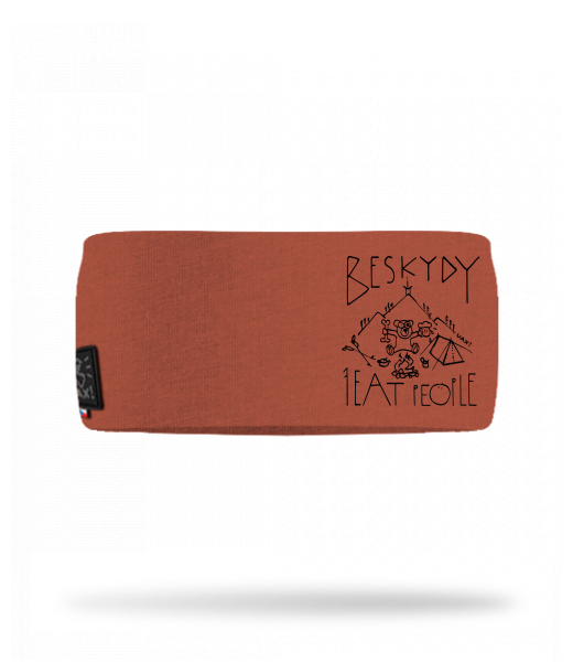 Cotton sports headband for kid with design 1241 I EAT PEOPLE BESKYDY in color TERRA