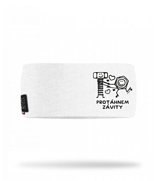 Cotton sports headband for kid with design 1242 PROTÁHNEM ZÁVITY in color WHITE