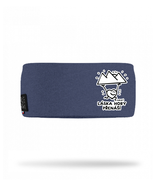 Cotton sports headband for kid with design 1264 LÁSKA HORY PŘENÁŠÍ in color JEANS