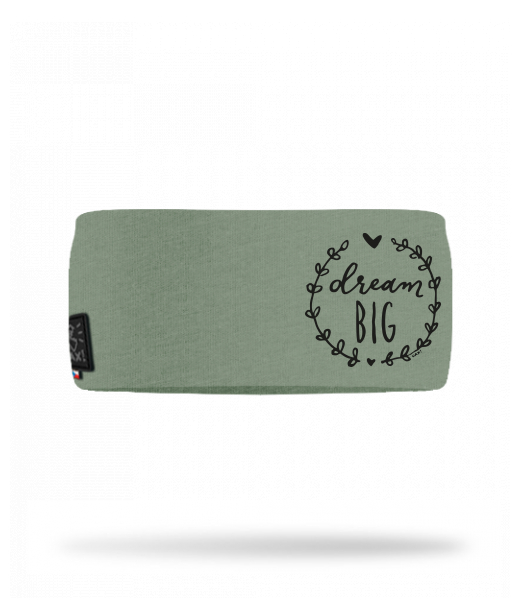 Cotton sports headband for kid with design 1286 DREAM BIG in color OLIVA