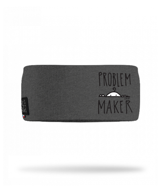 Cotton sports headband for kid with design 1385 PROBLEM MAKER in color GRAFIT