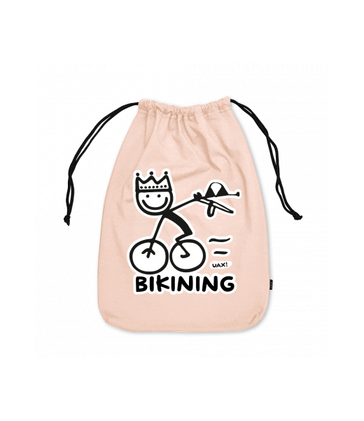 Small cotton pouch for kid with design 1080 BIKINING in color CAPPUCINO