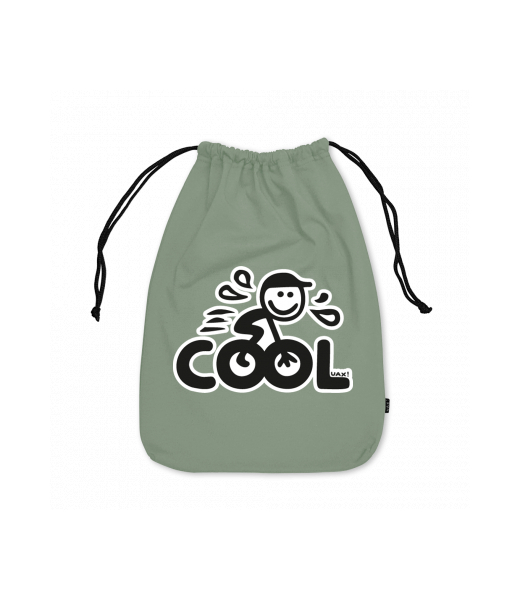 Small cotton pouch for kid with design 1169 COOL CYCLIST in color OLIVA