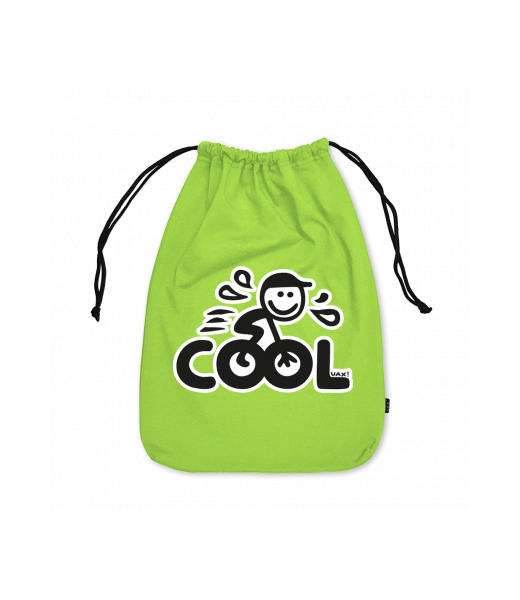 Small cotton pouch for kid with design 1169 COOL CYCLIST in color PARROT GREEN