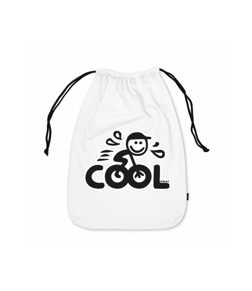 Small cotton pouch for kid with design 1169 COOL CYCLIST in color WHITE