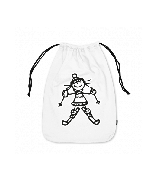 Small cotton pouch for kid with design 1179 SKIER GIRL in color WHITE