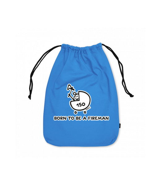 Small cotton pouch for kid with design 1184 BORN TO BE A FIREMAN in color CAPRI BLUE