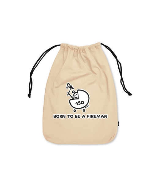Small cotton pouch for kid with design 1184 BORN TO BE A FIREMAN in color CARAMEL