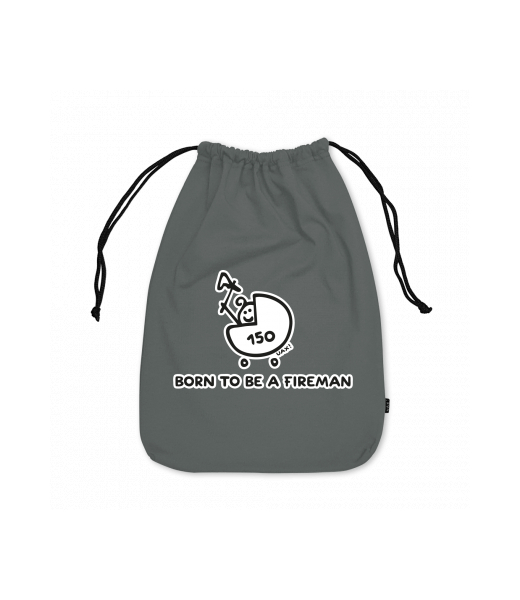 Small cotton pouch for kid with design 1184 BORN TO BE A FIREMAN in color DARK GRAY
