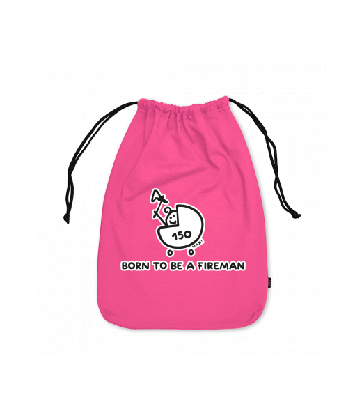 Small cotton pouch for kid with design 1184 BORN TO BE A FIREMAN in color INDIAN LILA