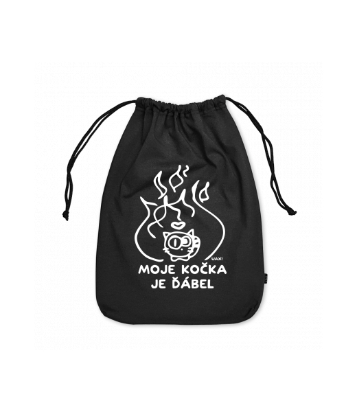 Small cotton pouch for kid with design 1326 MOJE KOČKA JE ĎÁBEL in color BLACK