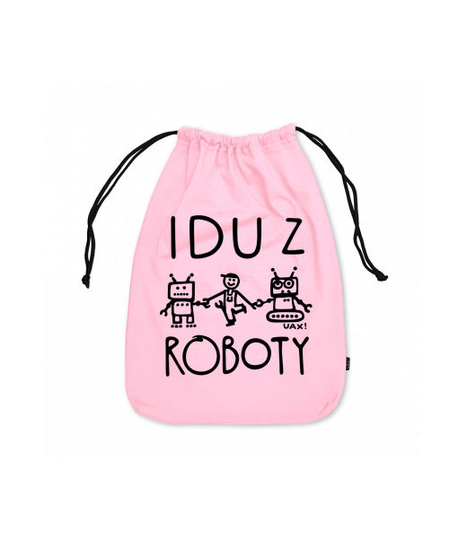 Small cotton pouch for kid with design 1377 IDU Z ROBOTY 2 in color BABY PINK