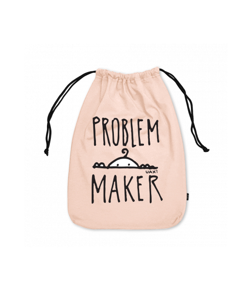 Small cotton pouch for kid with design 1385 PROBLEM MAKER in color CAPPUCINO