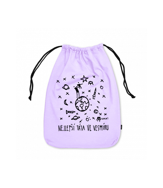 Small cotton pouch for kid with design 1387 NEJLEPŠÍ TÁTA VE VESMÍRU in color LAVENDER