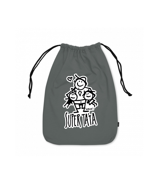 Small cotton pouch for kid with design 1390 SUPER TÁTA in color DARK GRAY