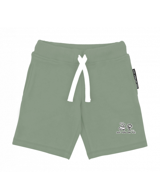 Children's shorts with an original print for kid with design 1306 SEE YOU ON TV in color OLIVA