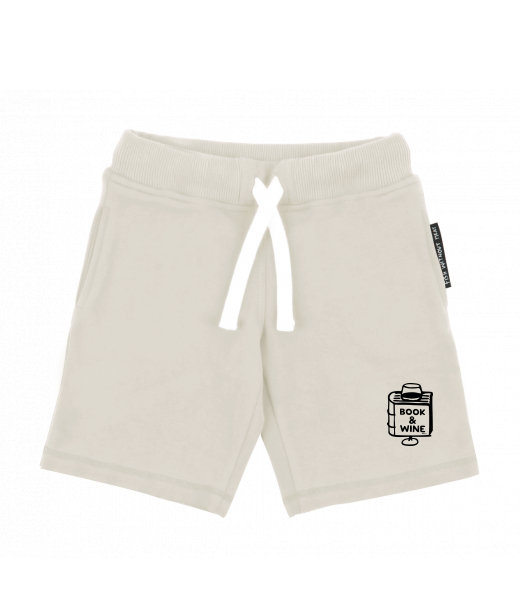 Children's shorts with an original print for kid with design 1322 BOOK AND WINE in color IVORY