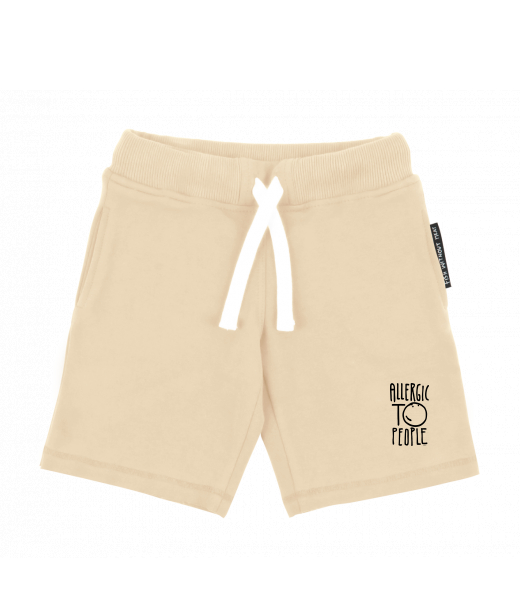 Children's shorts with an original print for kid with design 1329 ALLERGIC TO PEOPLE in color CARAMEL