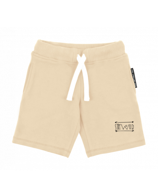 Children's shorts with an original print for kid with design 1338 STAY WILD 2 in color CARAMEL