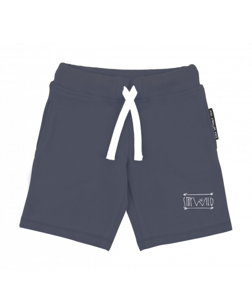 Children's shorts with an original print for kid with design 1338 STAY WILD 2 in color GRAY INK