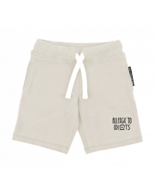 Children's shorts with an original print for kid with design 1354 ALLERGIC TO IDIOTS in color IVORY