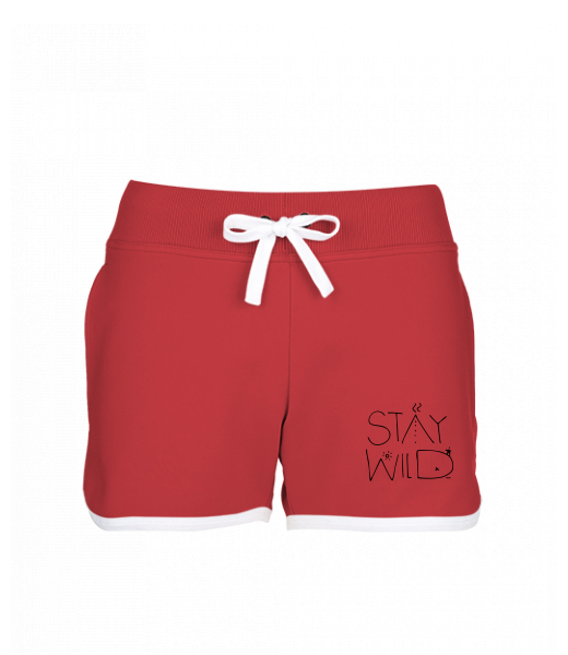Girl's shorts with an original print for kid with design 1337 STAY WILD in color RED