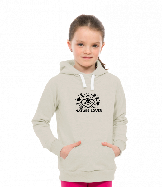 Children's sweatshirt LIGHT with a hood and design UAX! for kid with design 1325 NATURE LOVER in color IVORY