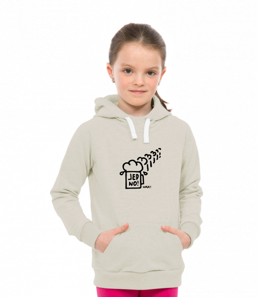 Children's sweatshirt LIGHT with a hood and design UAX! for kid with design 1340 JEDNO in color IVORY