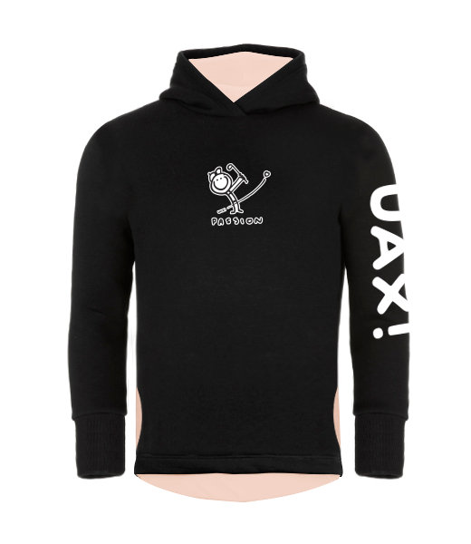 Kids asymmetrical sweatshirt, smooth sweatshirt over the head, with deep pockets on the side, comfortable fit, lower back hem. Comfortable, practical and multi-purpose unisex kids sweatshirt. Mix & Match - Choose from many original prints and combine colorful colors. Color configurator! Choose your own combination of colors for the inner pockets, the inside of the hood and the back inner hem.