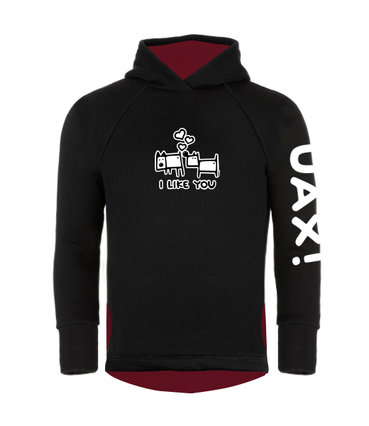 We make sustainable UAX clothing! - hand sewn in the Czech Republic uaxKids uaxAll productsSweatshirtsKIDS ASYMMETRICAL SWEATSHIRTdesign 1066 - I LIKE YOUDARK RED