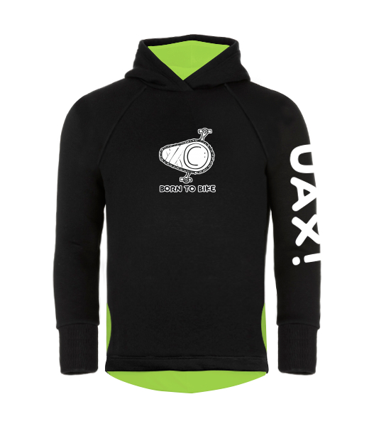 Kids asymmetrical sweatshirt for kid with design 1074 BORN TO BIKE in color PARROT GREEN