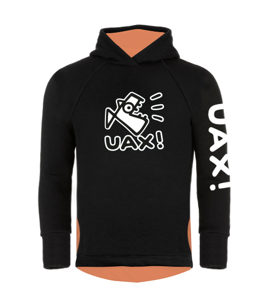 Kids asymmetrical sweatshirt for kid with design 1086 LOGO UAX! in color MANDARIAN ORANGE