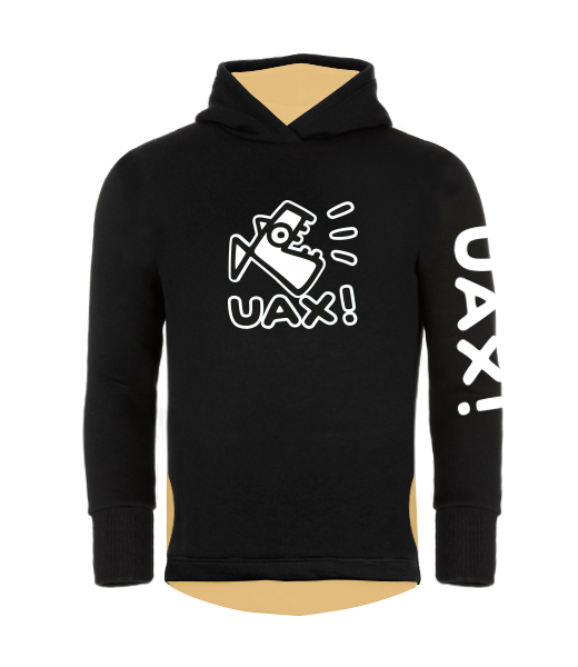 Kids asymmetrical sweatshirt for kid with design 1086 LOGO UAX! in color MUSTARD