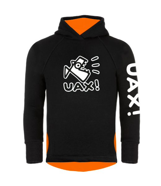 Kids asymmetrical sweatshirt for kid with design 1086 LOGO UAX! in color SIGNAL ORANGE