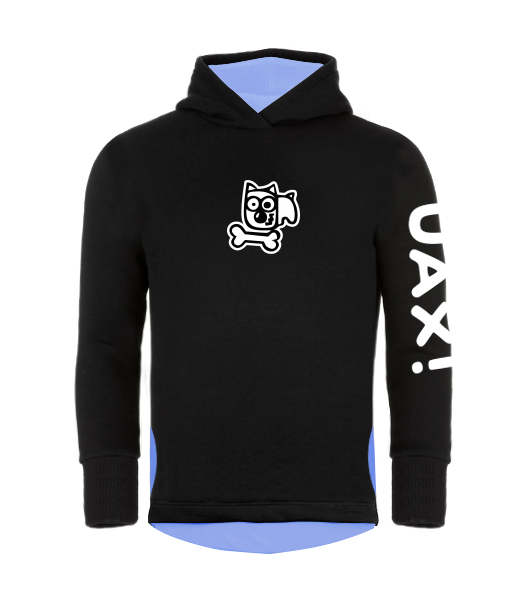 Kids asymmetrical sweatshirt, smooth sweatshirt over the head, with deep pockets on the side, comfortable fit, lower back hem. Comfortable, practical and multi-purpose unisex kids sweatshirt. Mix & Match - Choose from many original prints and combine colorful colors. Color configurator! Choose your own combination of colors for the inner pockets, the inside of the hood and the back inner hem.