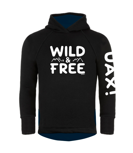 Kids asymmetrical sweatshirt for kid with design 1161 WILD AND FREE in color DARK NAVY