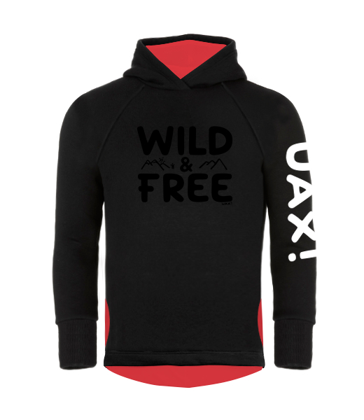 Kids asymmetrical sweatshirt for kid with design 1161 WILD AND FREE in color RED