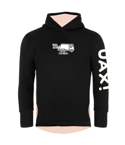Kids asymmetrical sweatshirt, smooth sweatshirt over the head, with deep pockets on the side, comfortable fit, lower back hem. Comfortable, practical and multi-purpose unisex kids sweatshirt. Mix & Match - Choose from many original prints and combine colorful colors. Color configurator! Choose your own combination of colors for the inner pockets, the inside of the hood and the back inner hem.