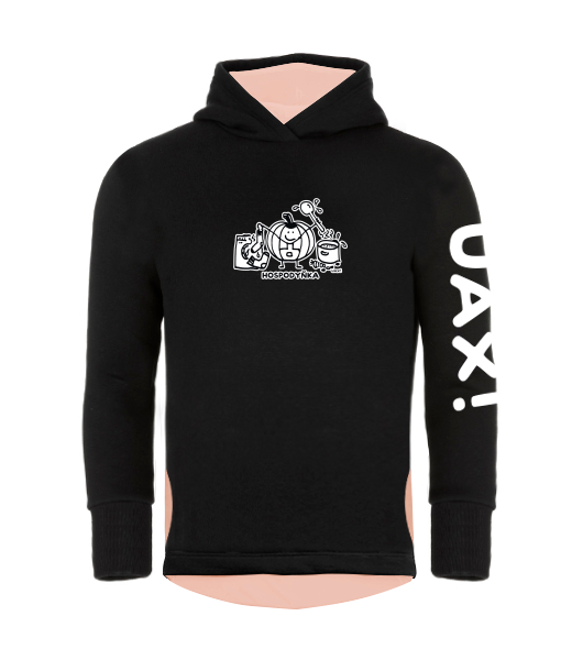 Kids asymmetrical sweatshirt, smooth sweatshirt over the head, with deep pockets on the side, comfortable fit, lower back hem. Comfortable, practical and multi-purpose unisex kids sweatshirt. Mix & Match - Choose from many original prints and combine colorful colors. Color configurator! Choose your own combination of colors for the inner pockets, the inside of the hood and the back inner hem.