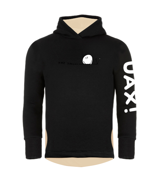 Kids asymmetrical sweatshirt, smooth sweatshirt over the head, with deep pockets on the side, comfortable fit, lower back hem. Comfortable, practical and multi-purpose unisex kids sweatshirt. Mix & Match - Choose from many original prints and combine colorful colors. Color configurator! Choose your own combination of colors for the inner pockets, the inside of the hood and the back inner hem.