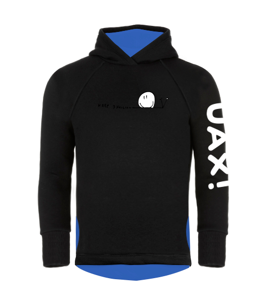 Kids asymmetrical sweatshirt, smooth sweatshirt over the head, with deep pockets on the side, comfortable fit, lower back hem. Comfortable, practical and multi-purpose unisex kids sweatshirt. Mix & Match - Choose from many original prints and combine colorful colors. Color configurator! Choose your own combination of colors for the inner pockets, the inside of the hood and the back inner hem.
