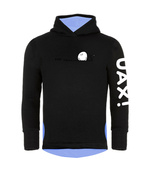 Kids asymmetrical sweatshirt, smooth sweatshirt over the head, with deep pockets on the side, comfortable fit, lower back hem. Comfortable, practical and multi-purpose unisex kids sweatshirt. Mix & Match - Choose from many original prints and combine colorful colors. Color configurator! Choose your own combination of colors for the inner pockets, the inside of the hood and the back inner hem.