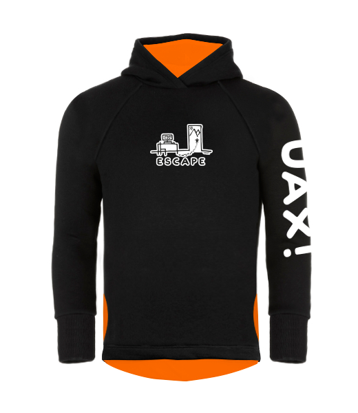 Kids asymmetrical sweatshirt for kid with design 39 ESCAPE in color SIGNAL ORANGE