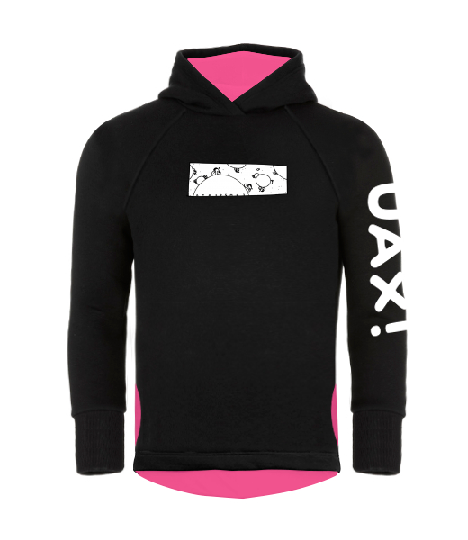Kids asymmetrical sweatshirt, smooth sweatshirt over the head, with deep pockets on the side, comfortable fit, lower back hem. Comfortable, practical and multi-purpose unisex kids sweatshirt. Mix & Match - Choose from many original prints and combine colorful colors. Color configurator! Choose your own combination of colors for the inner pockets, the inside of the hood and the back inner hem.