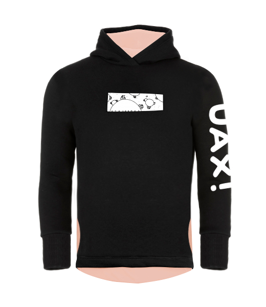 Kids asymmetrical sweatshirt, smooth sweatshirt over the head, with deep pockets on the side, comfortable fit, lower back hem. Comfortable, practical and multi-purpose unisex kids sweatshirt. Mix & Match - Choose from many original prints and combine colorful colors. Color configurator! Choose your own combination of colors for the inner pockets, the inside of the hood and the back inner hem.