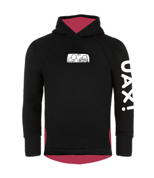 Kids asymmetrical sweatshirt, smooth sweatshirt over the head, with deep pockets on the side, comfortable fit, lower back hem. Comfortable, practical and multi-purpose unisex kids sweatshirt. Mix & Match - Choose from many original prints and combine colorful colors. Color configurator! Choose your own combination of colors for the inner pockets, the inside of the hood and the back inner hem.