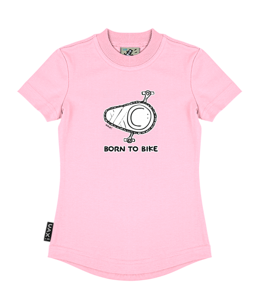 We make sustainable UAX clothing! - hand sewn in the Czech Republic uaxKids uaxAll productsT-shirtsGIRL'S T-SHIRTSdesign 1074 - BORN TO BIKEBABY PINK