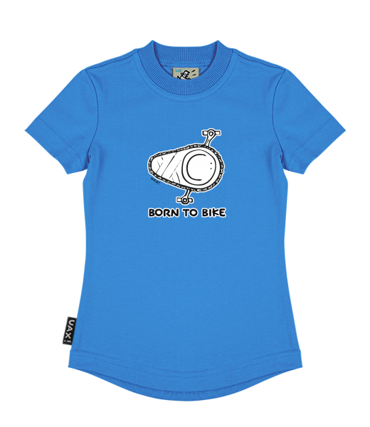 We make sustainable UAX clothing! - hand sewn in the Czech Republic uaxKids uaxAll productsT-shirtsGIRL'S T-SHIRTSdesign 1074 - BORN TO BIKECAPRI BLUE